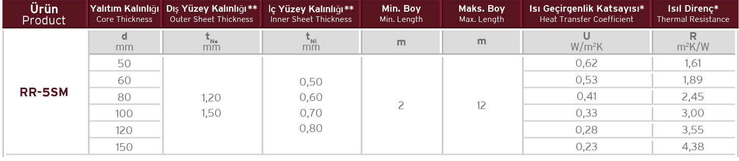 • According to TS EN 14509, U values range between 0,49 – 0,11 W/m2K depending on the panel thickness