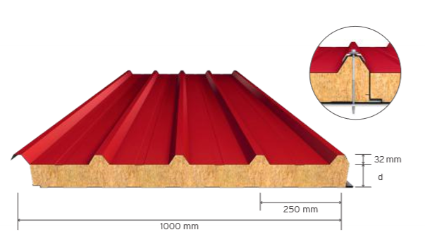 Fire performance according to TS EN 13501-1,A2-s1; d0 for Rock Wool insulated roof panels