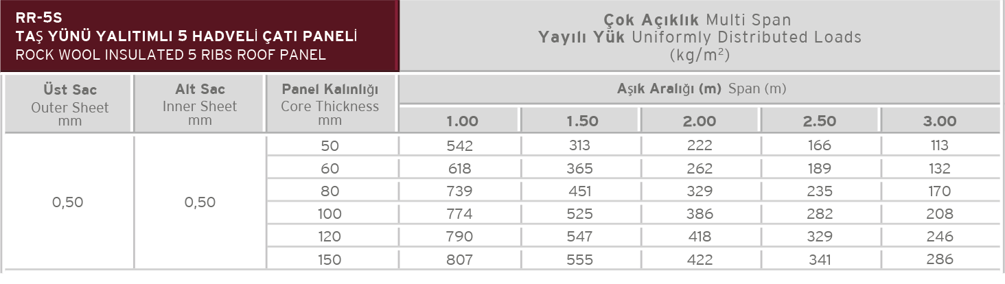 According to TS EN 14509, U values range between 0,63 – 0,23 W/m2K depending on the panel thickness