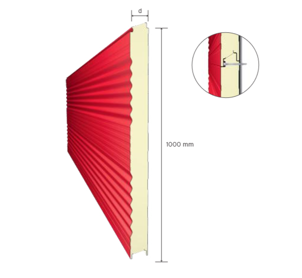 Core thickness options: lined and micro lined panels 40-50-60-70-75-80-100-120-150-180-200 mm; deep lined panels 40-50-60 mm