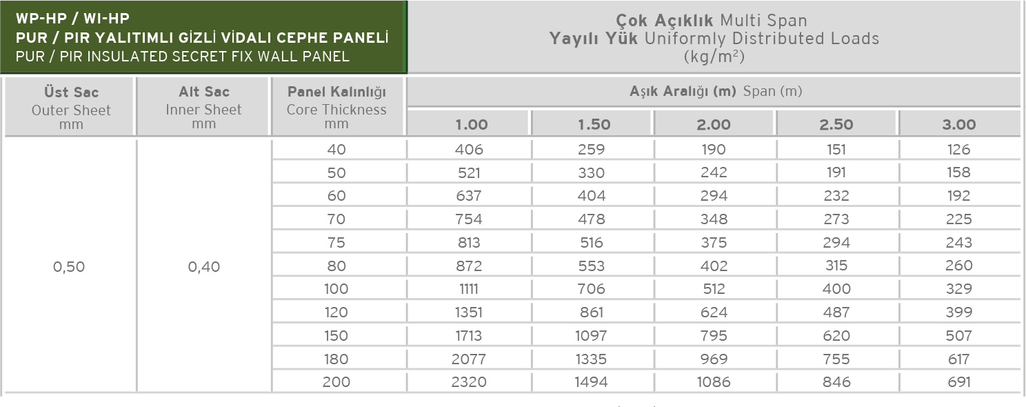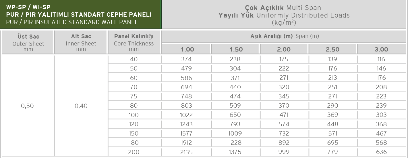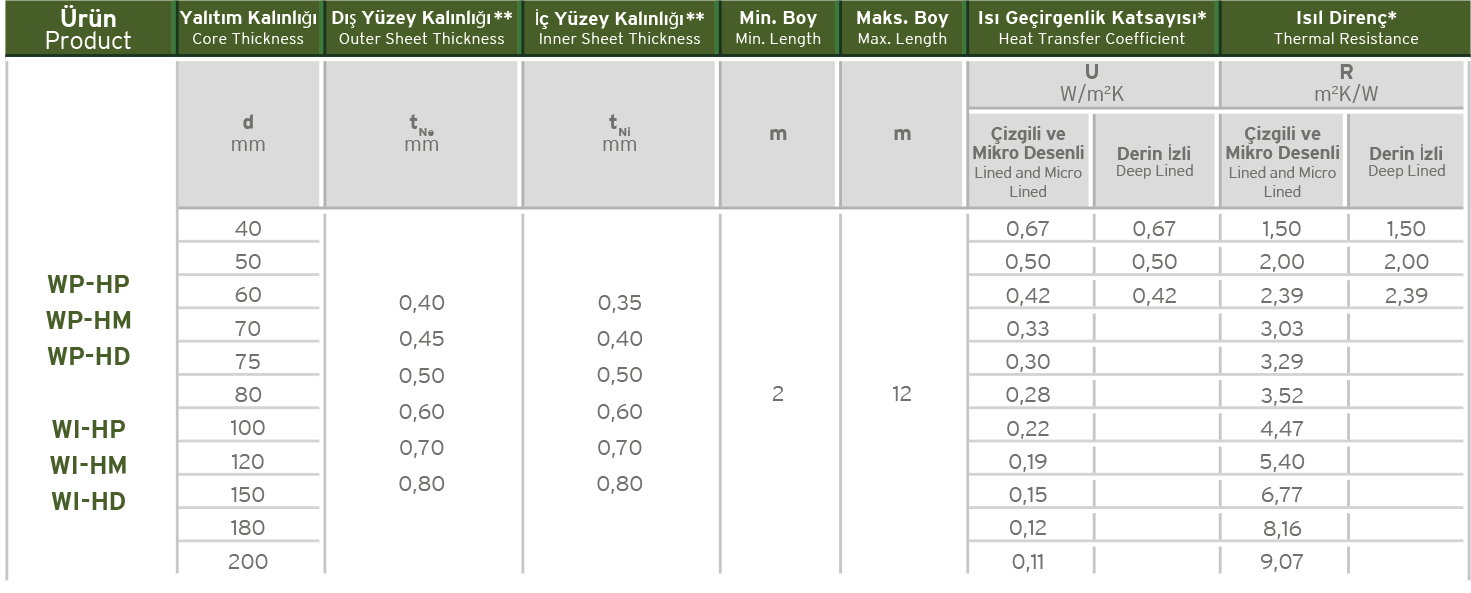 According to TS EN 14509, U values range between0,57 – 0,11 W/m2K for lined and micro lined,0,57 – 0,37 W/m2K for deep lined depending on the panel thickness