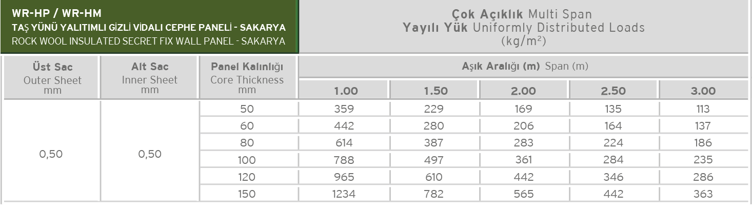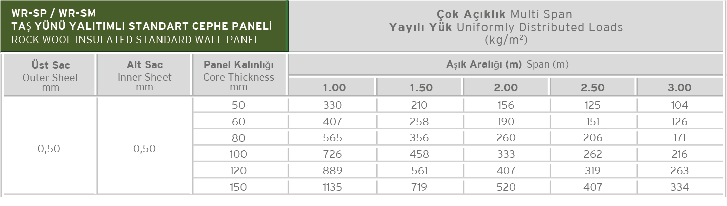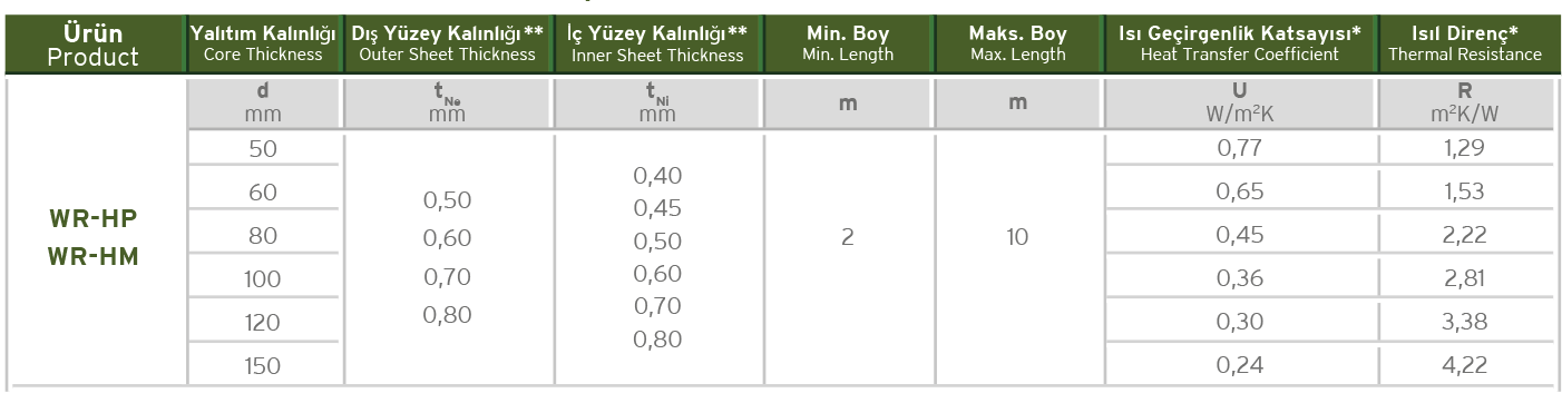 • According to TS EN 14509, U values range between 0,77 – 0,24 W/m2K depending on the panel thickness